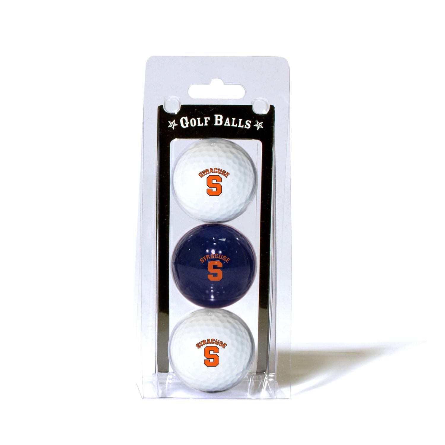 Three quality surlyn covered golf balls imprinted with the Syracuse Orangemen college logo.