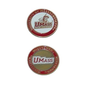 Large double-sided golf ball marker with the Massachusetts Minutemen logo.