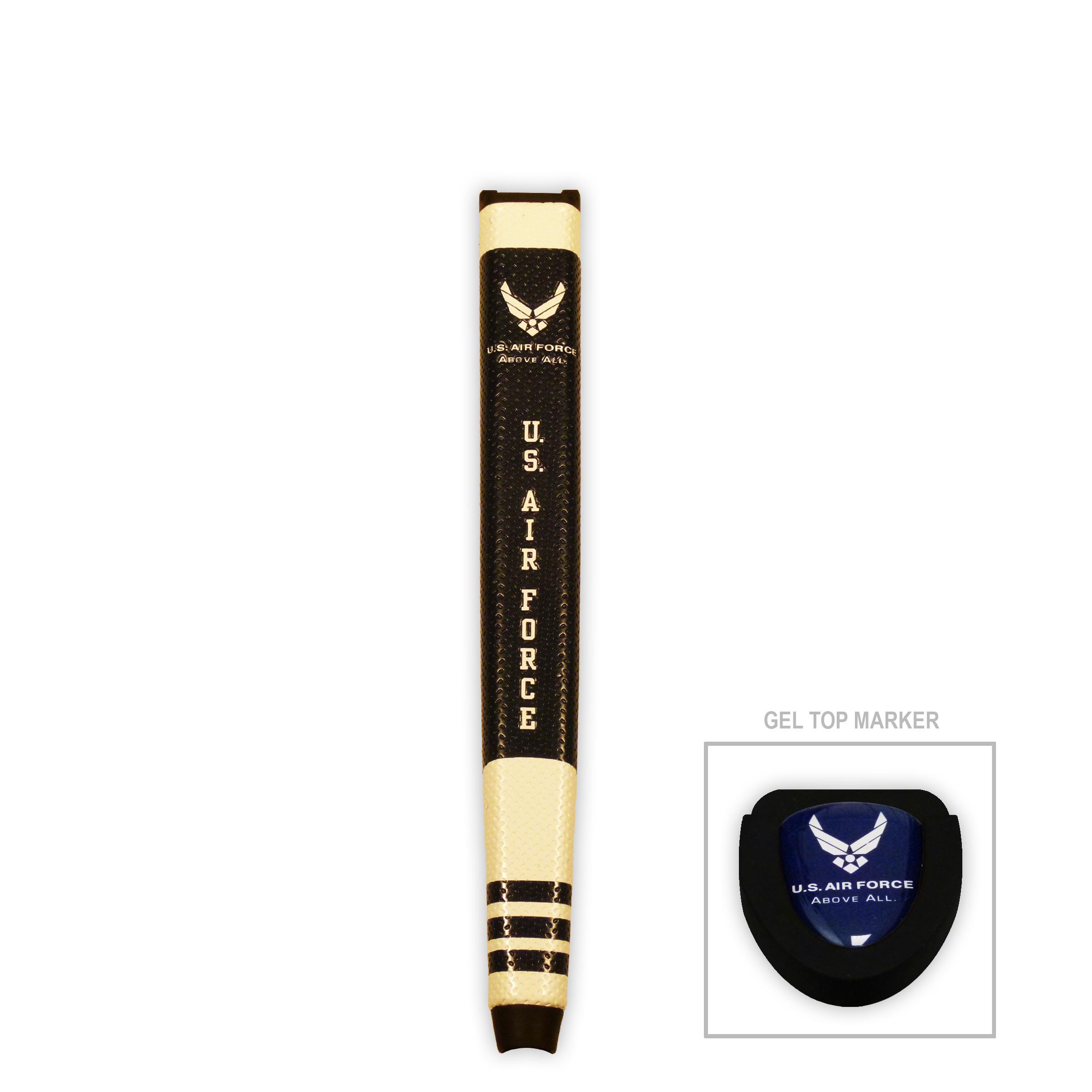 The U.S. Air Force Oversize Logo Golf Grips are the hottest golf grips on the market. The U.S. Air Force team logo is visible on the top of the grip as well as along the front face of the grip. The U.S. Air Force Oversize Logo Golf Grip provides exceptional feel and texture while on the course. The U.S. Air Force Oversize Logo Golf Grip also features a removable gel-top ball marker that features the U.S. Air Force team logo.