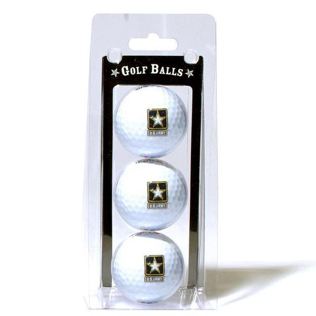 Three quality surlyn covered golf balls imprinted with the U.S. Army college logo.