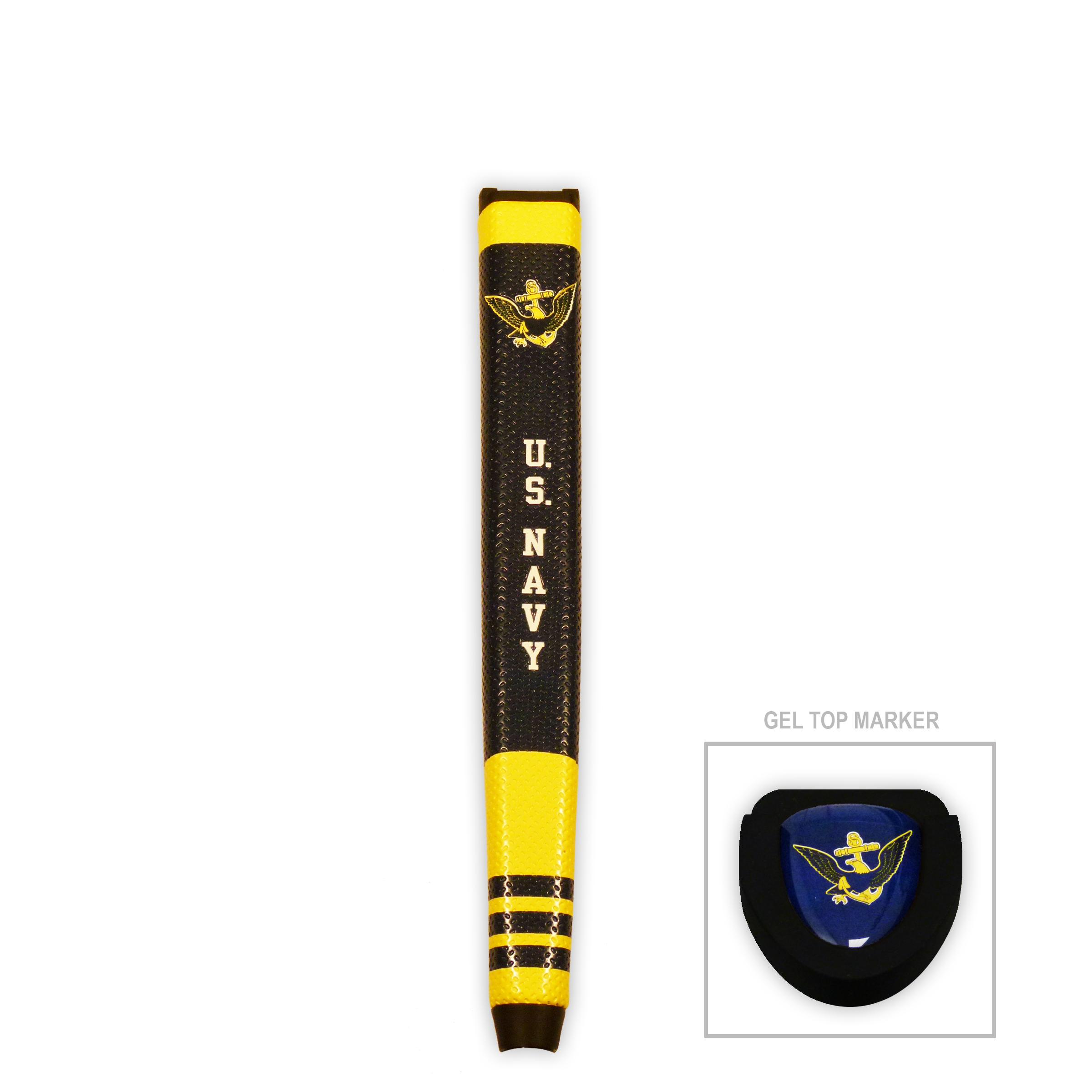 The U.S. Navy Oversize Logo Golf Grips are the hottest golf grips on the market. The U.S. Navy team logo is visible on the top of the grip as well as along the front face of the grip. The U.S. Navy Oversize Logo Golf Grip provides exceptional feel and texture while on the course. The U.S. Navy Oversize Logo Golf Grip also features a removable gel-top ball marker that features the U.S. Navy team logo.