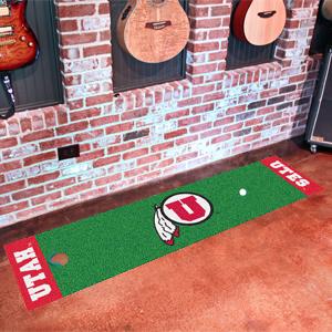 Practice your putting skills with this dual use Utah Utes logo runner. This realistic Utah Utes logo putting green runner acts as a putting practice surface as well as a runner with the Utah Utes color and logo. Looks good in your game room, office or any room you choose. Includes a secure fit plastic target barrier bumper under the Utah Utes logo mat that acts as a putting hole. Has a 11 on the Stimp meter, and it is made of a Chromojet-printed nylon surface with vinyl backing. Approximant measurements are 18” x 72", and it is officially licensed. Not available for expedited delivery. All mats are made to order therefore may take up to 2 weeks to ship.