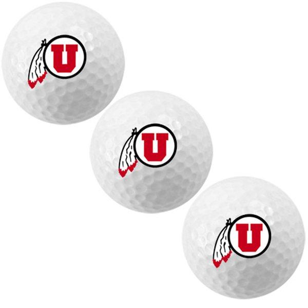 Three quality surlyn covered golf balls imprinted with the Utah Utes college logo.