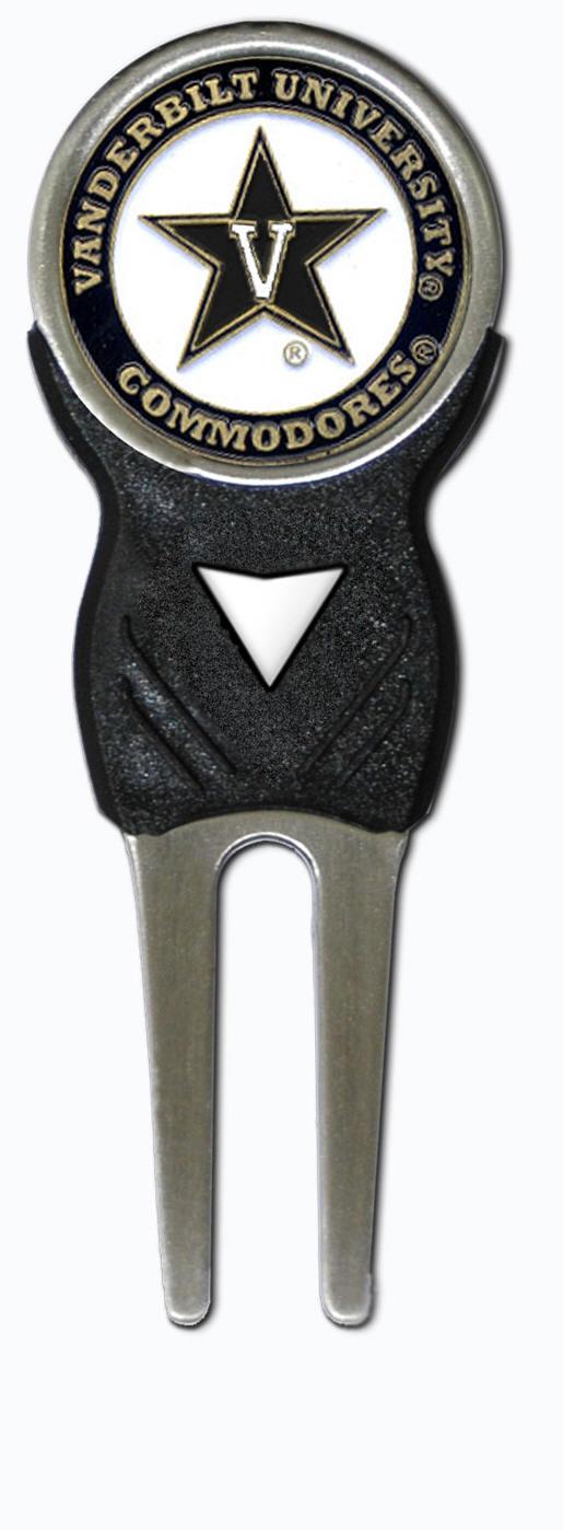 Vanderbilt Commodores logo golf divot repair tool is a vital component for every golfer's game. Heavy gauge metal construction that will provide years of use to repair divots, mark your ball, and clean turf from your cleats. The divot tool has a beautiful finish and is approximately 3" in length. The large ball marker is magnetically held to the Vanderbilt Commodores tool and includes 2 extra Vanderbilt Commodores logo golf ball markers.