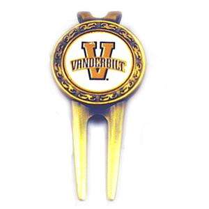 Vanderbilt Commodores logo golf divot repair tool is a vital component for every golfer's game. Heavy gauge metal construction that will provide years of use to repair divots, mark your ball, and clean turf from your cleats. Top design of the Vanderbilt Commodores logo divot repair tool is ideal for a club holder, and the integrated clip offers versatility, which can be used as a money clip or to hold the tool securely to your pocket or belt. Beautiful antique brass finish and approximately 3" in length. Large ball marker on the front that is magnetically held to tool with the Vanderbilt Commodores logo and smaller marker on back of the Vanderbilt Commodores logo divot repair tool that is magnetically held in place.