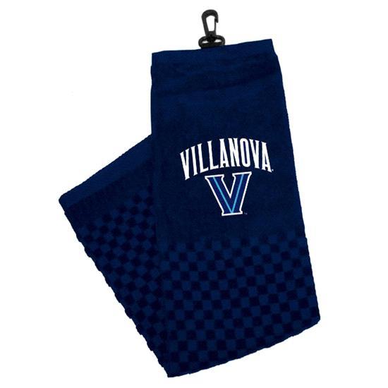 Premium weight 16" x 26" Villanova Wildcats logo embroidered tri-fold golf towel made of sheared 100% cotton velour. Features a swivel clip attachment. Embroidered with the Villanova Wildcats logo.