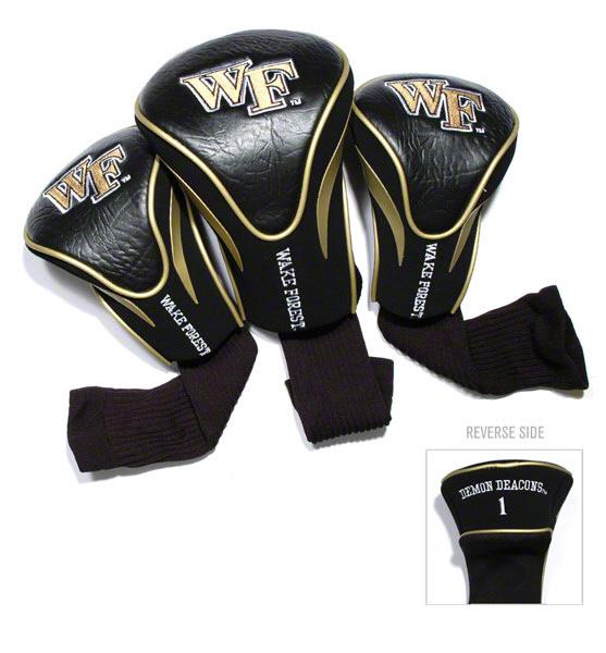 Wake Forest Demon Deacons Contour Fit Headcover Set. Take your team pride to the golf course with this Wake Forest Demon Deacons Contour Fit Headcover Set. Set includes 3 stylish contoured headcovers with innovative materials and sleek design - numbered 1, 3 and X. *The #1 fits all oversized drivers *Nylon sock protects shafts from damage *Officially licensed by the NCAA