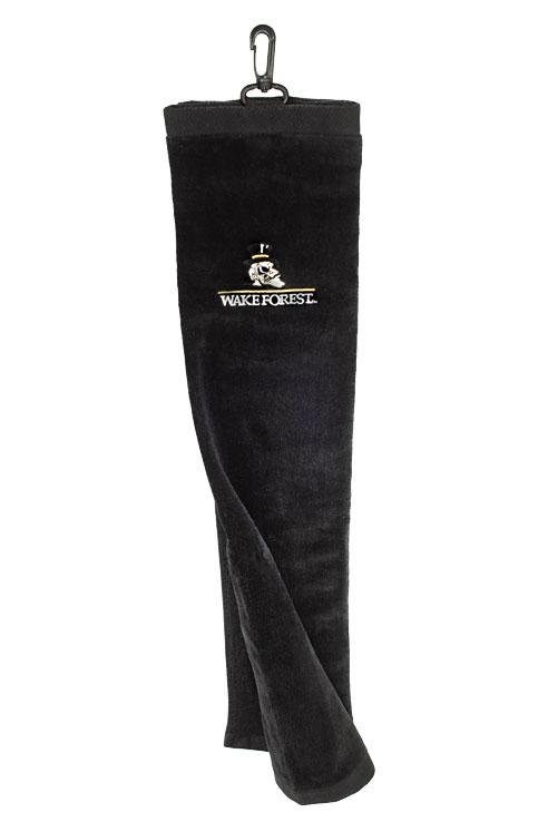 Premium weight 16" x 26" Wake Forest Demon Deacons logo embroidered tri-fold golf towel made of sheared 100% cotton velour. Features a swivel clip attachment. Embroidered with the Wake Forest Demon Deacons logo.