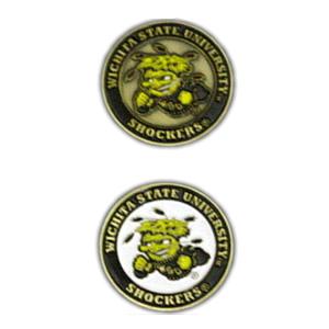 Large double-sided golf ball marker with the Wichita State Shockers logo.