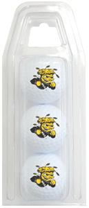 Three quality surlyn covered golf balls imprinted with the Wichita State Shockers college logo.
