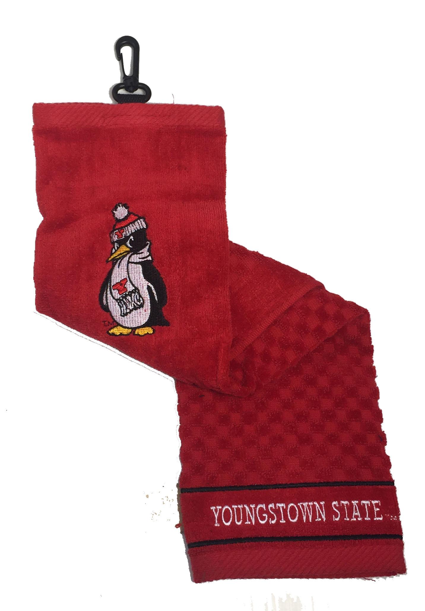 Premium weight 16" x 26" Youngstown State Penguins logo embroidered tri-fold golf towel made of sheared 100% cotton velour. Features a swivel clip attachment. Embroidered with the Youngstown State Penguins logo.
