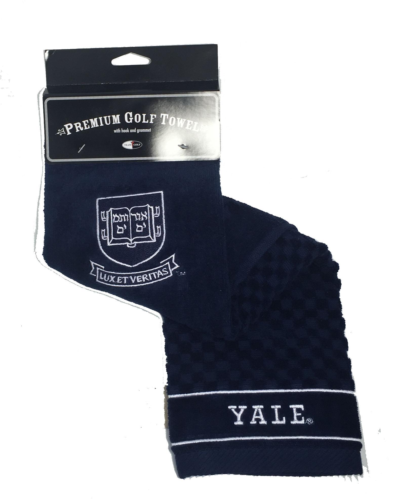 Premium weight 16" x 26" Yale Bulldogs logo embroidered tri-fold golf towel made of sheared 100% cotton velour. Features a swivel clip attachment. Embroidered with the Yale Bulldogs logo.